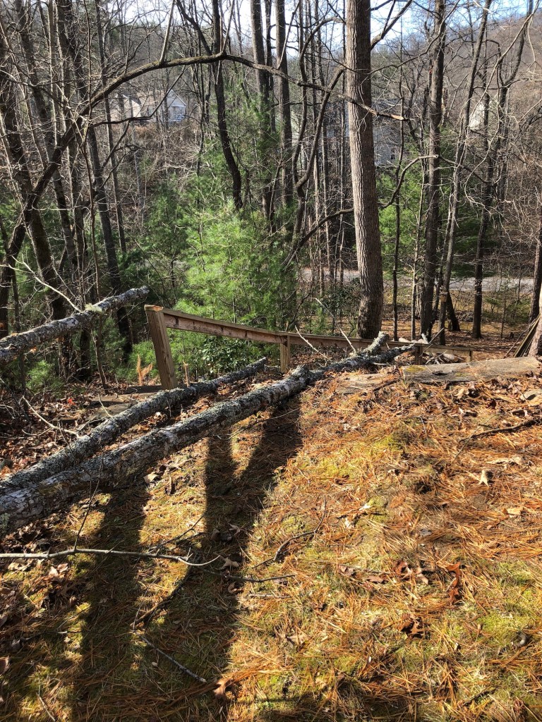 The tree was down and with only minor damage to a path rail! We are beyond thankful the tree didn’t damage the house and fell in such a way that we didn’t have to pay a tree surgeon to take it down. My husband has plans for the wood and next spring I hope he is able to spend many happy hours in his wood shop.