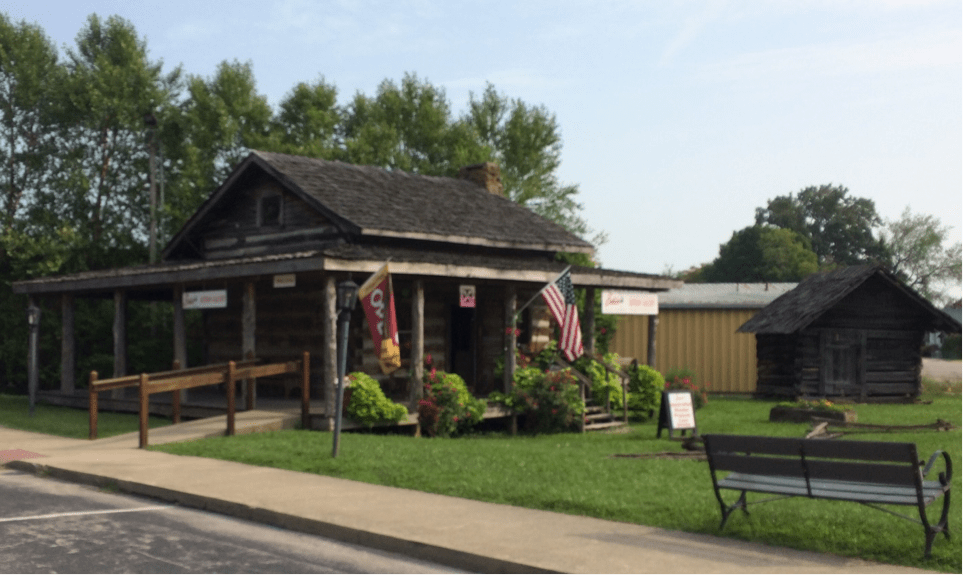 Leaving Lexington this morning, I headed south 40 miles on I-75 to visit The Cabin of Old Town Artisan Gallery located in Berea, KY. I wasn’t sure what to expect, but when I arrived at the site, I discovered it was not just one restored 1813 cabin, but an entire cul-de-sac of shops displaying various types of home-made crafts. One of the buildings looked like it could have been the old Berea Railway Station.